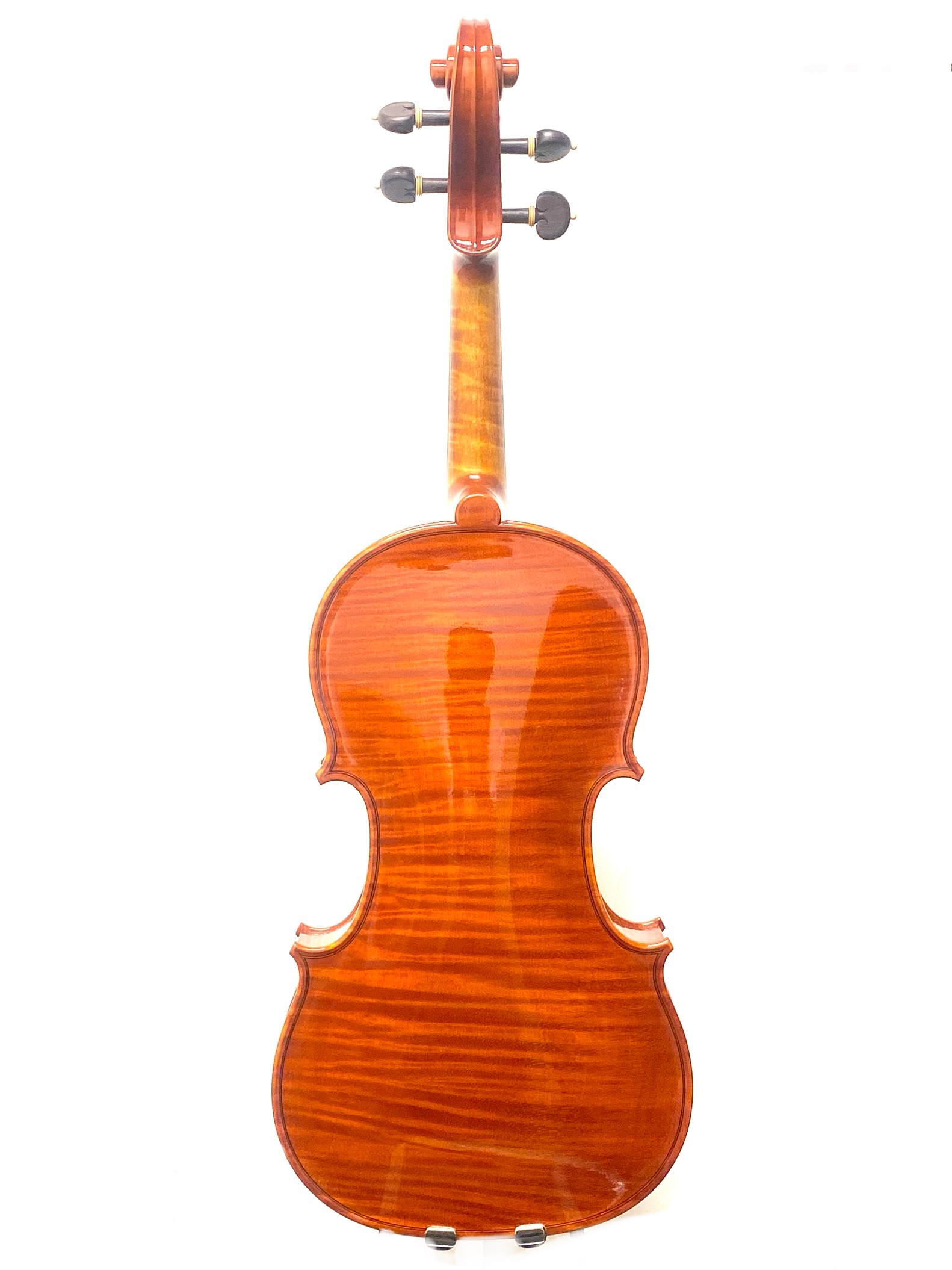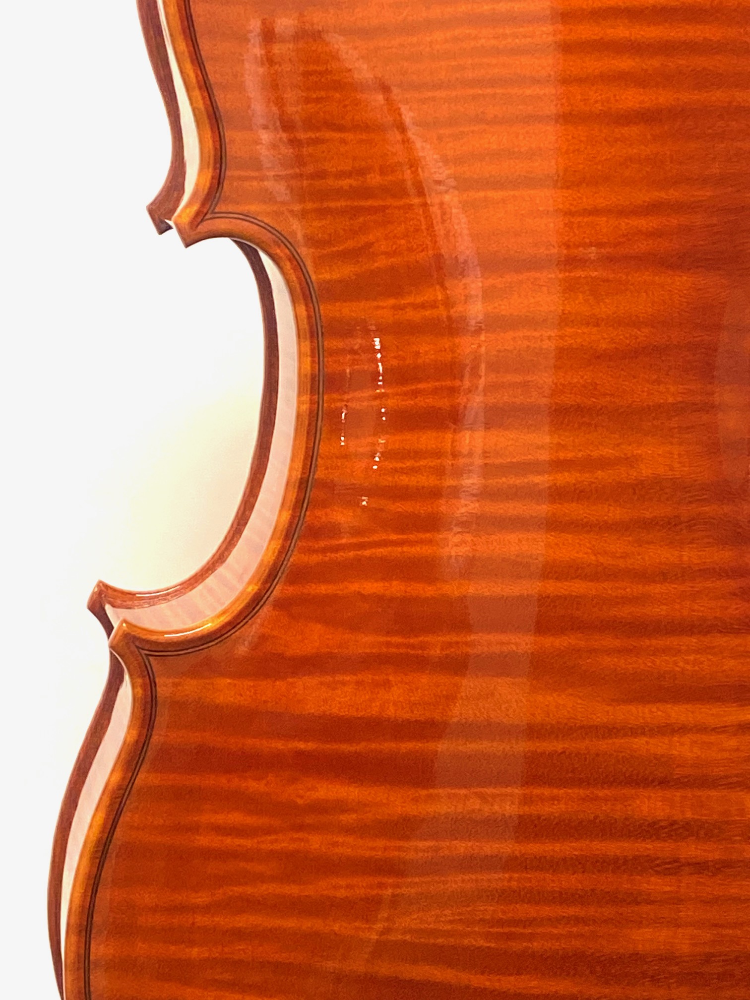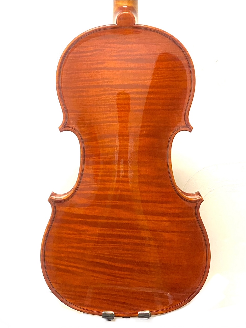 その最新作ヴァイオリンが山野楽器に届きました。イタリアンヴァイオリンで最も人気があるシメオーネの ヴァイオリンは購入することは難しく、入手も困難とされています。 今回シメオーネ・モラッシー氏と山野楽器の深い関係から、託していただけることになりました。 モデルは、ストラディバリ。名器とされた作品をモデルとしています。 その圧倒的な迫力ある杢の裏板、美しく精微な作り。まさに極上の逸品と言えるでしょう。