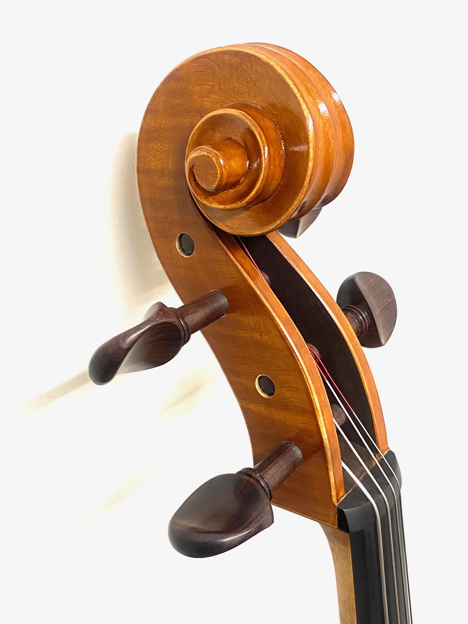 こちらの#27モデルは、#22や#25モデルよりもさらにハイグレードなスプルースとメープル木材が 使われています。より太く、豊かな音量が圧巻です。 ニスも艶やかで、新作チェロでありながらも、堂々たる風格を醸し出しています。 グレードアップをご検討中の方に自信を持っておすすめできる1本です。