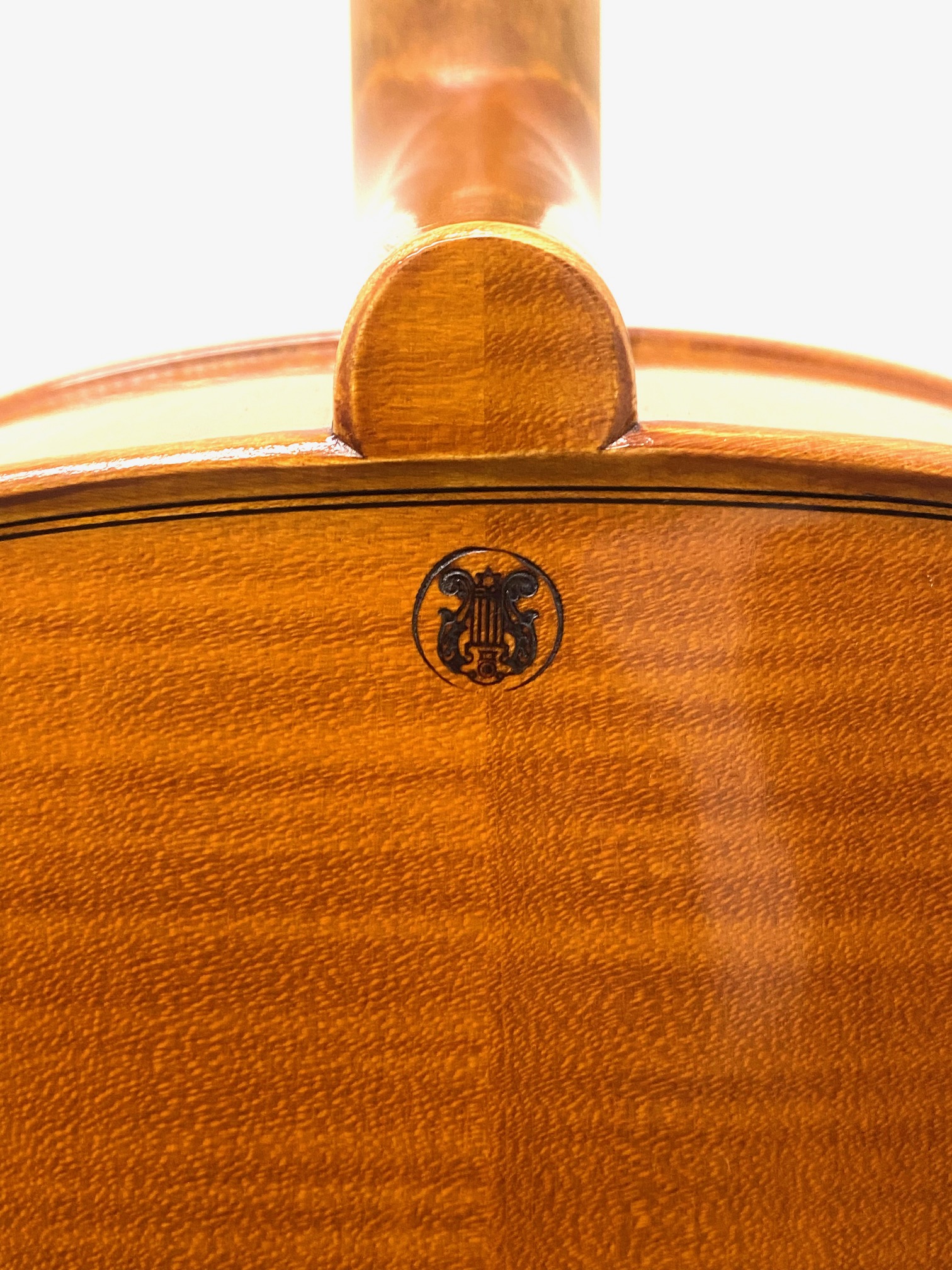 そしてレオンハルトのすべての楽器には、家紋であるLyreの焼印がネック部分に捺されています。